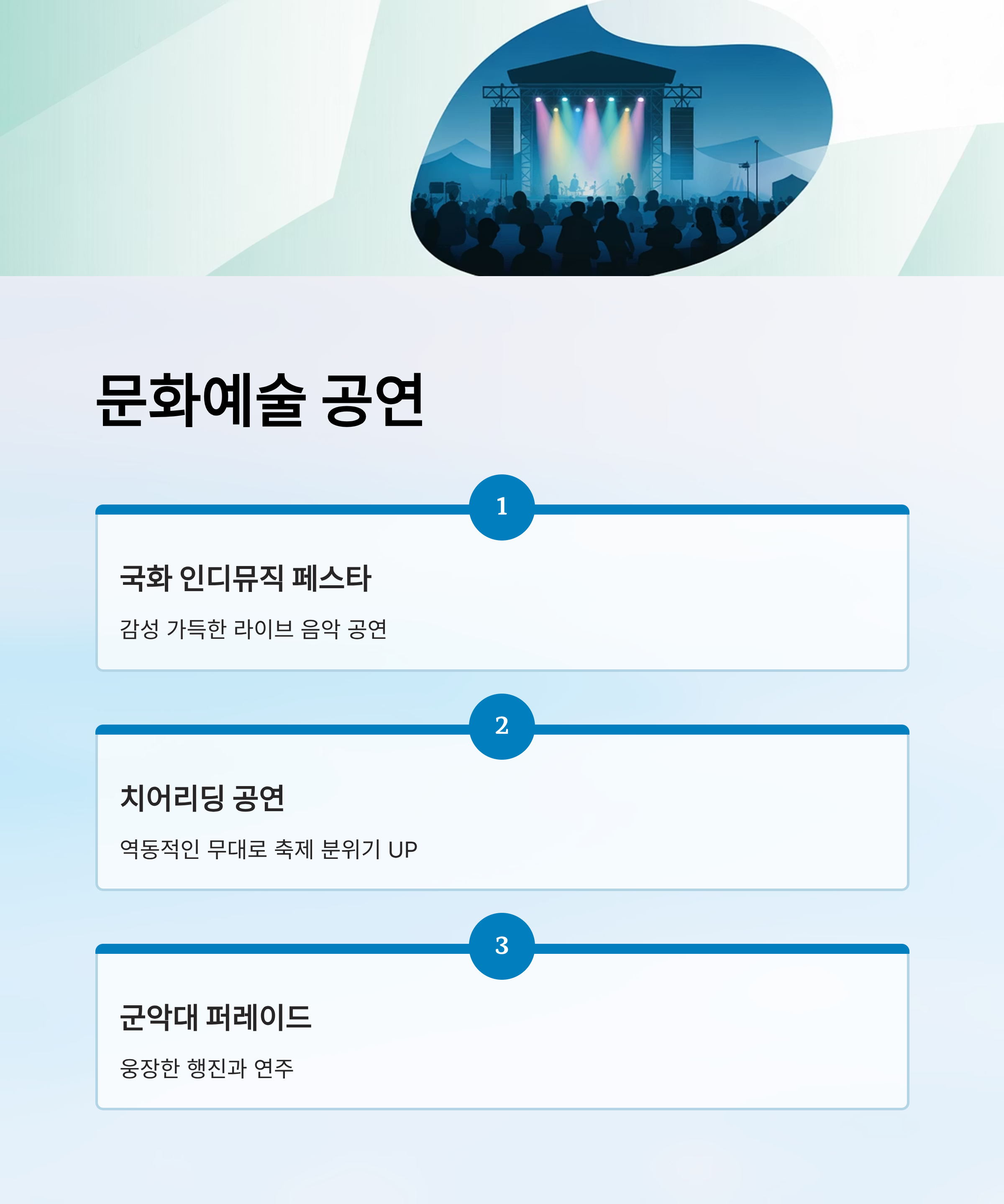 - 군악대 퍼레이드 등 다양한 무대가 준비되어 있습니다.