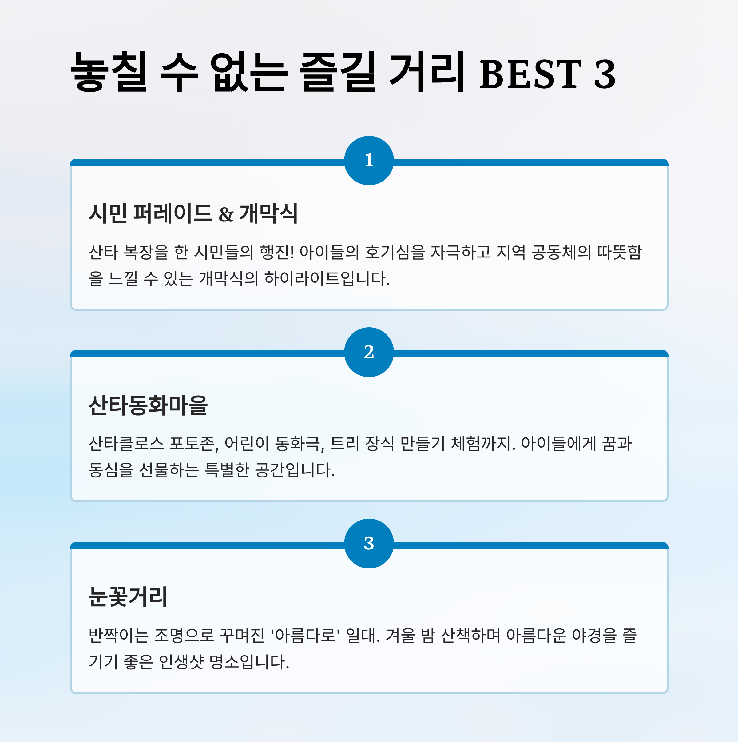 3. 놓치지 말아야 할 즐길 거리 BEST 3