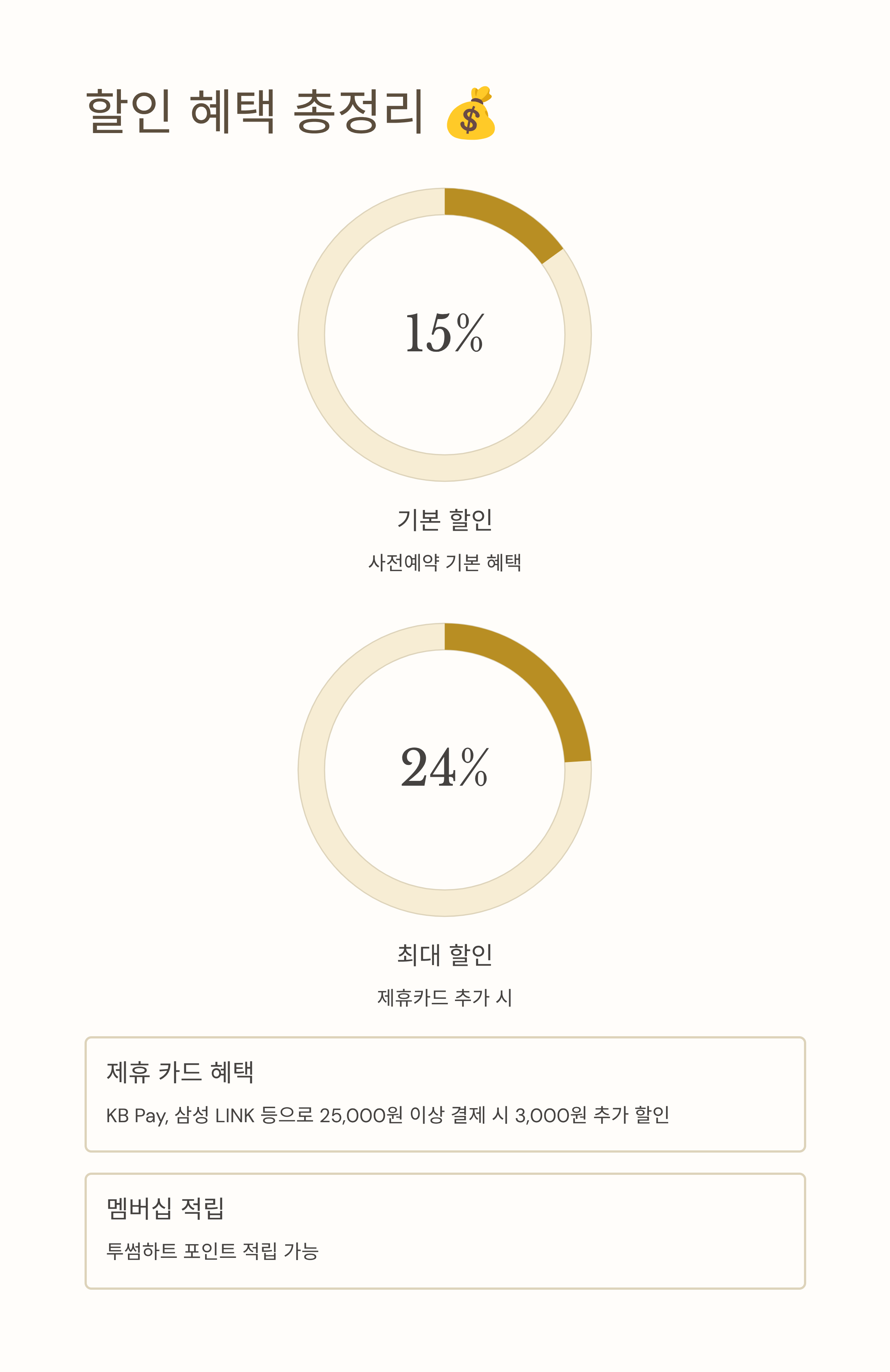 | 기본 할인 | 15% 사전예약 할인 쿠폰 |
