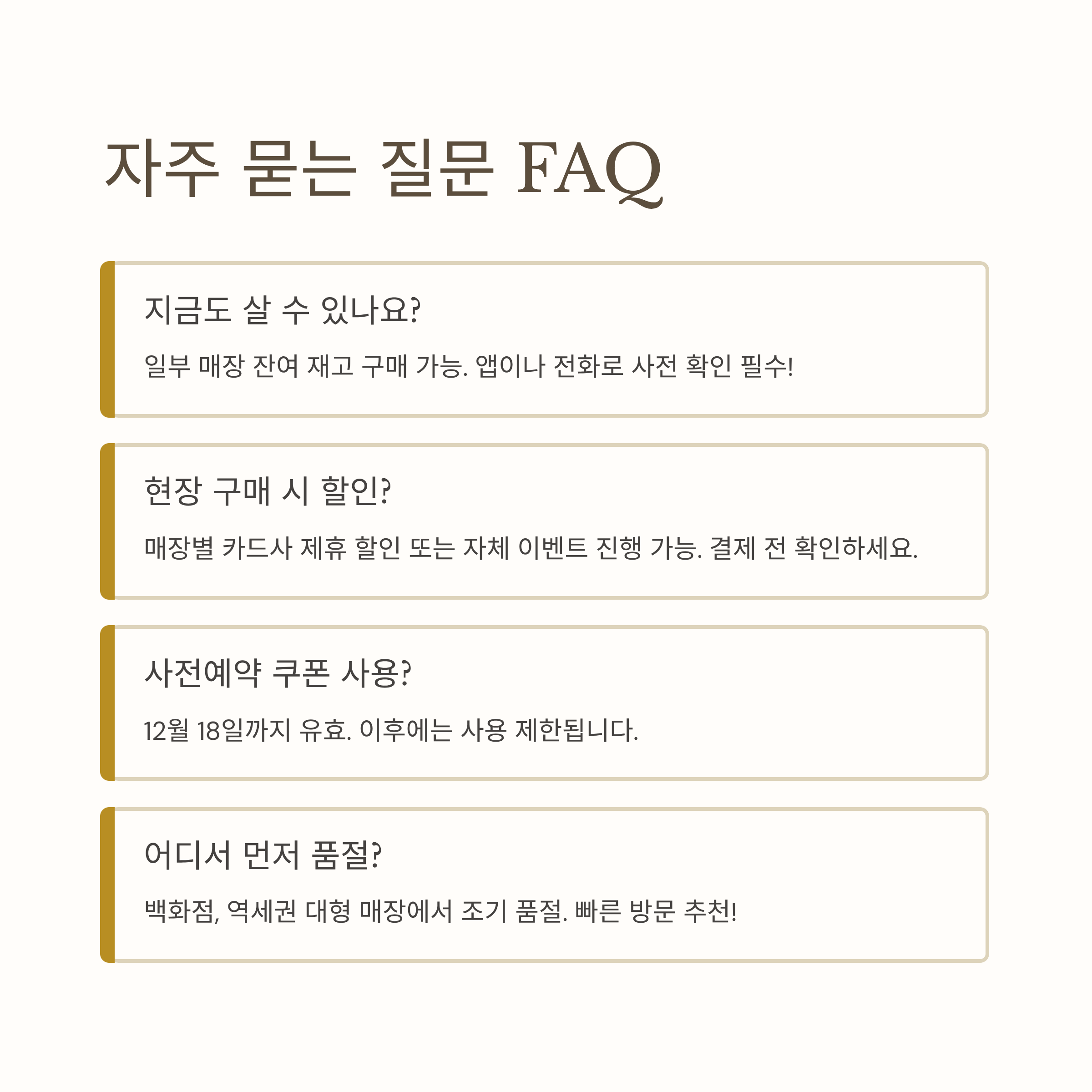 - 유의사항: 변경·취소 불가, 매장별 재고 확인 필수