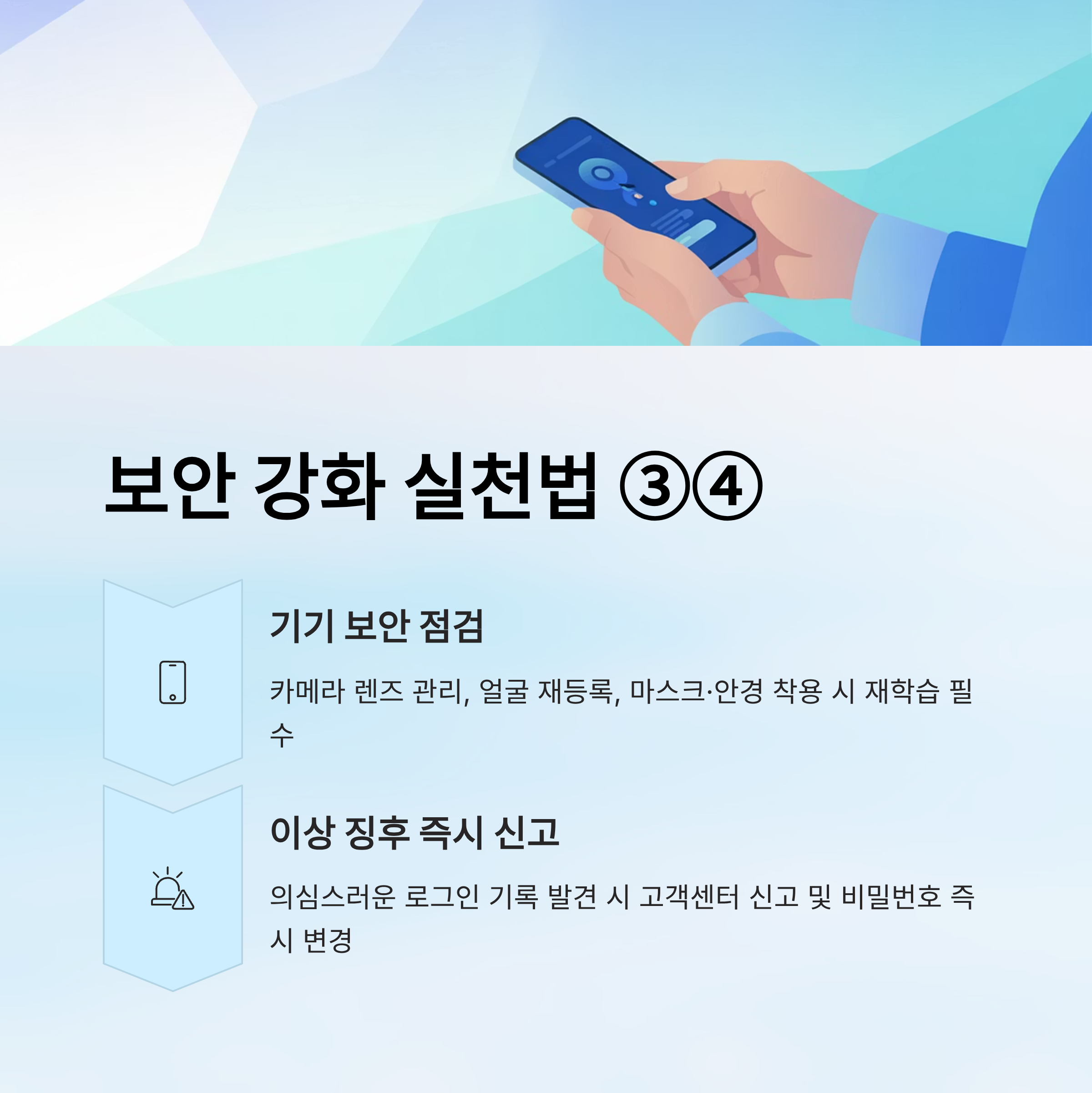 - 반드시 다중 인증과 기기 보안 설정을 병행하세요