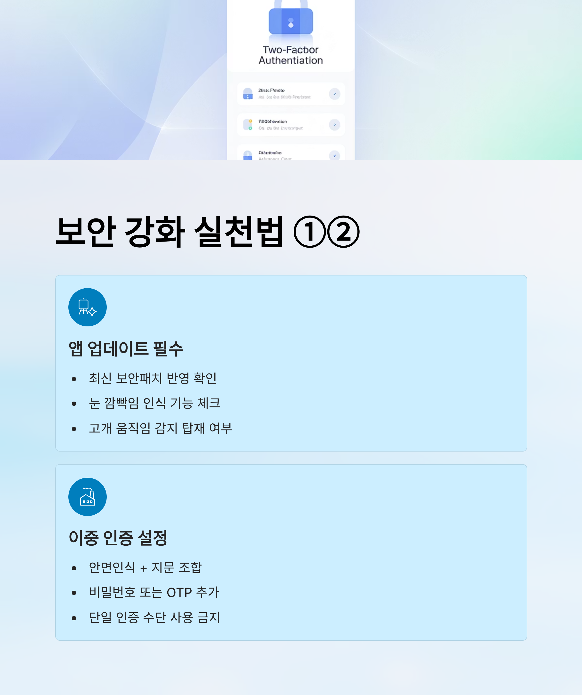 📌 생체정보만으로 인증하는 시스템은 여전히 취약합니다.