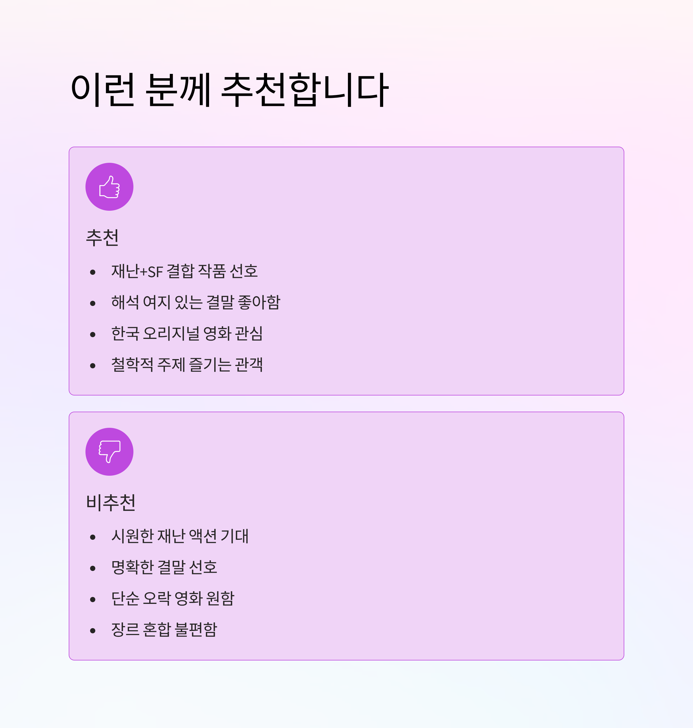 - 재난 영화에 SF·AI 설정이 결합된 작품을 좋아하는 분