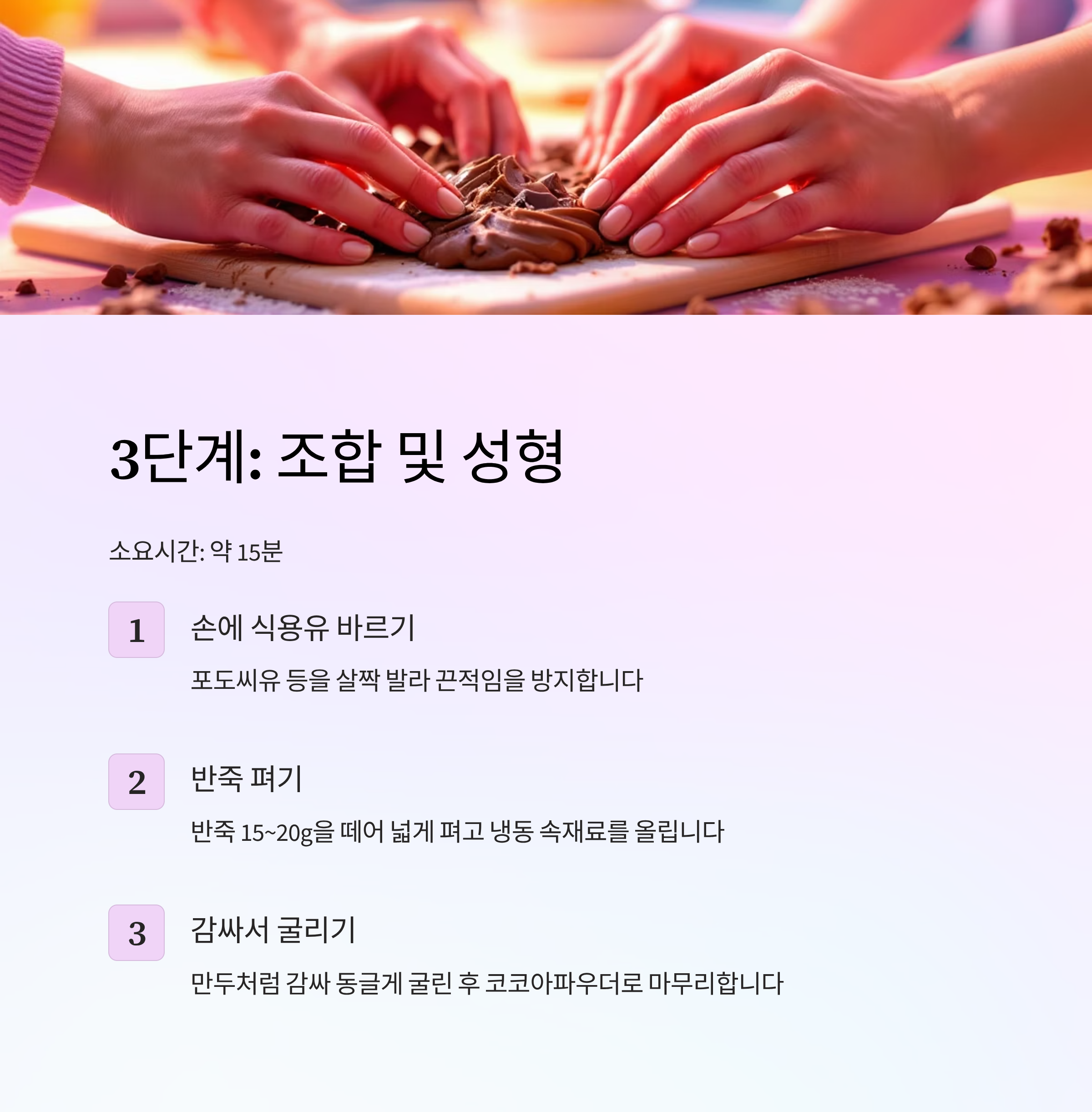 정리하면, 이 레시피대로만 따라 하면 카페급 두쫀쿠를 집에서 안정적으로 완성할 수 있습니다. 재료만 준비되면 과정은 단순하니, 처음 도전하는 분들도 부담 없이 만들어 보세요.