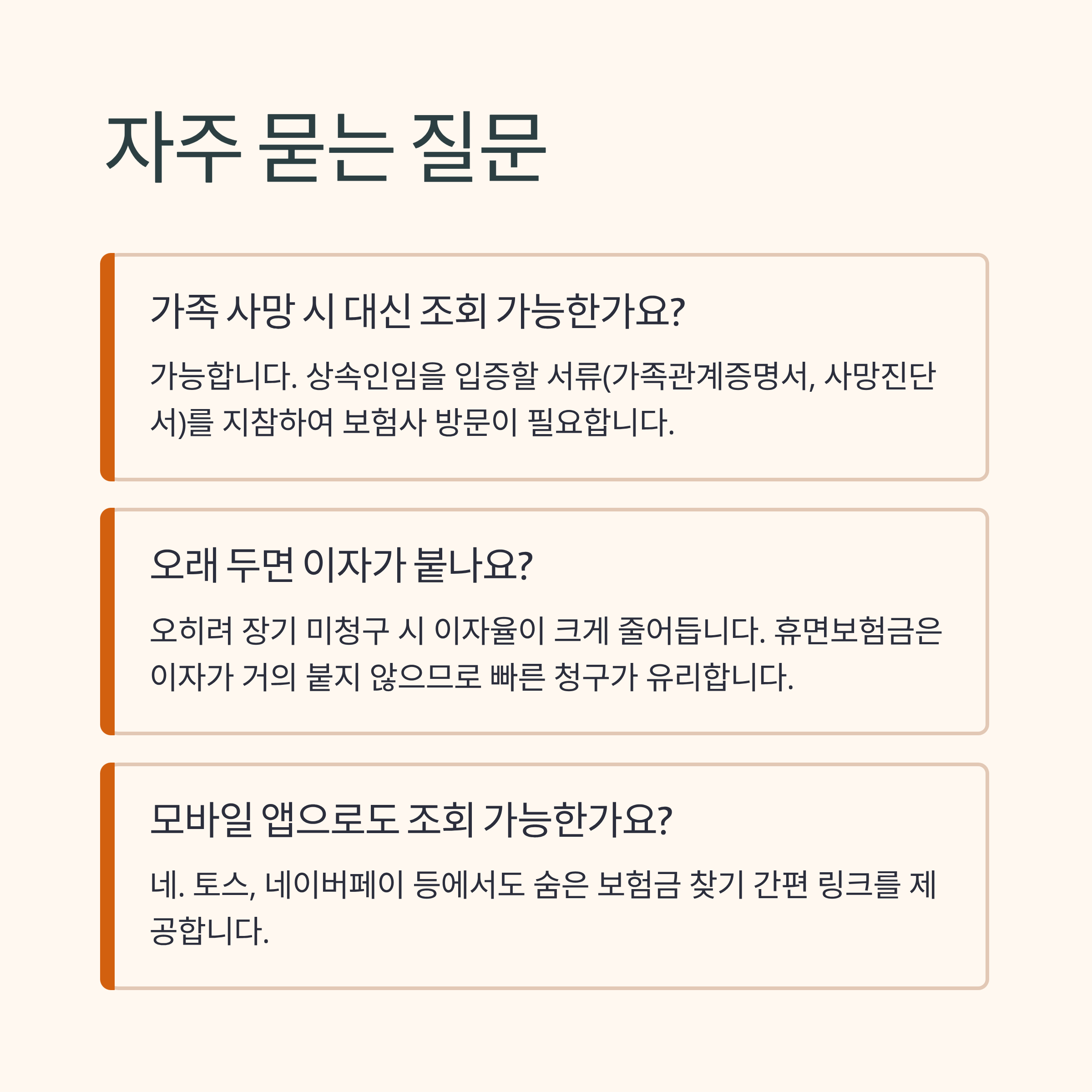 - 내가 잊고 있던 수십~수백만 원의 보험금을 찾을 수 있습니다.